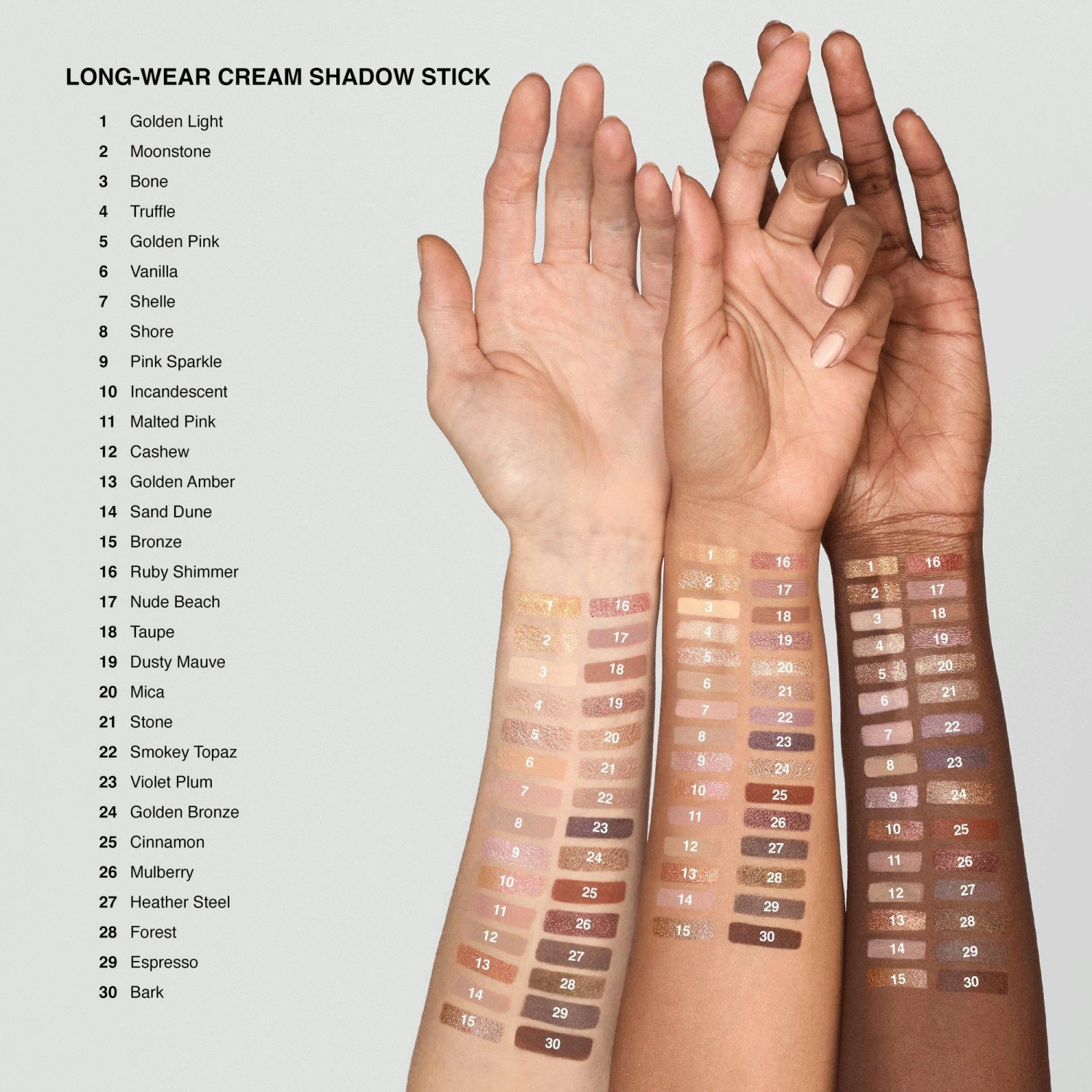 - Waterproof, long-lasting shadow seamlessly stays put for 24 hours of non-settling, non-creasing, non-flaking, non-smudging, color-true wear