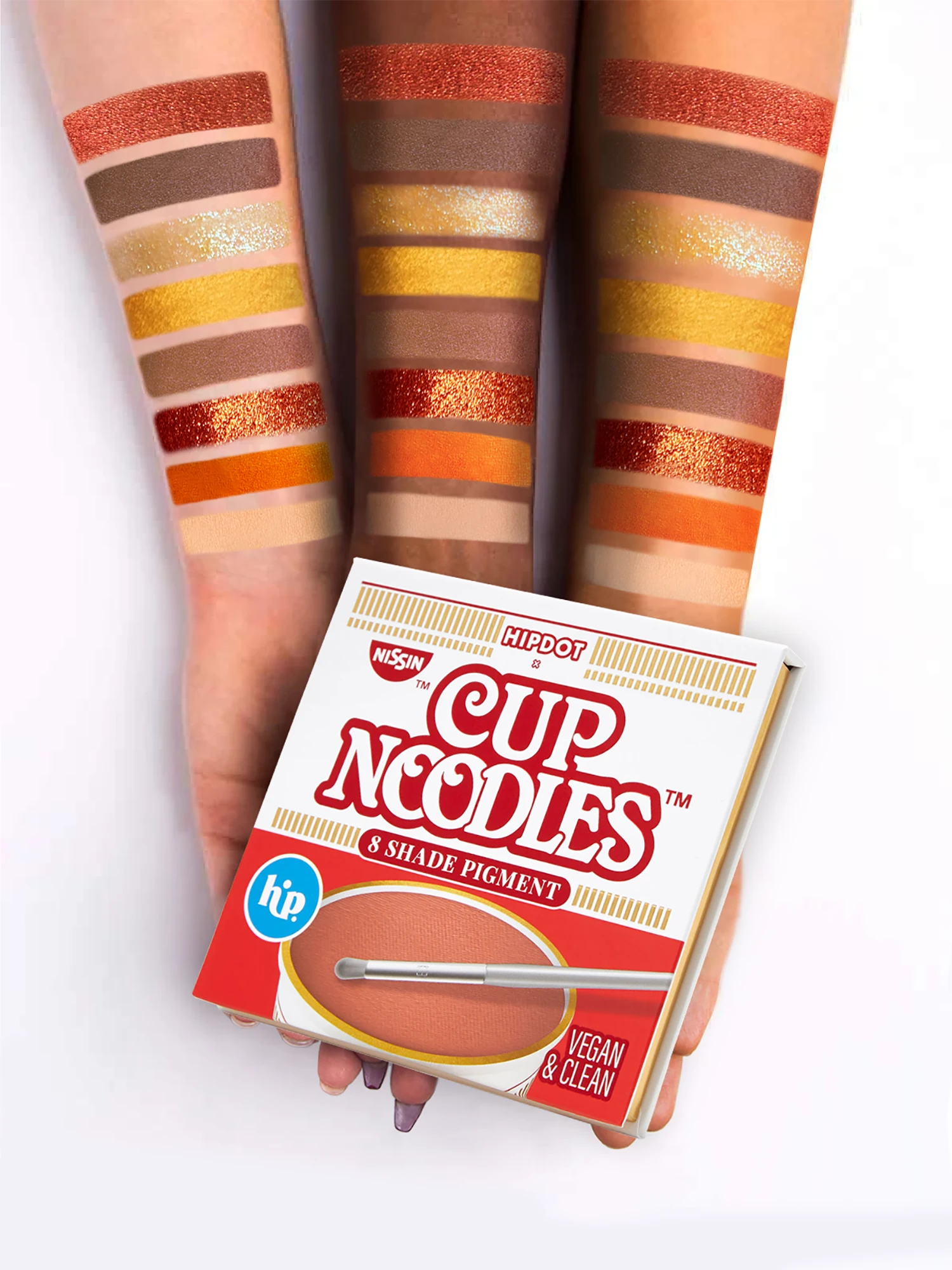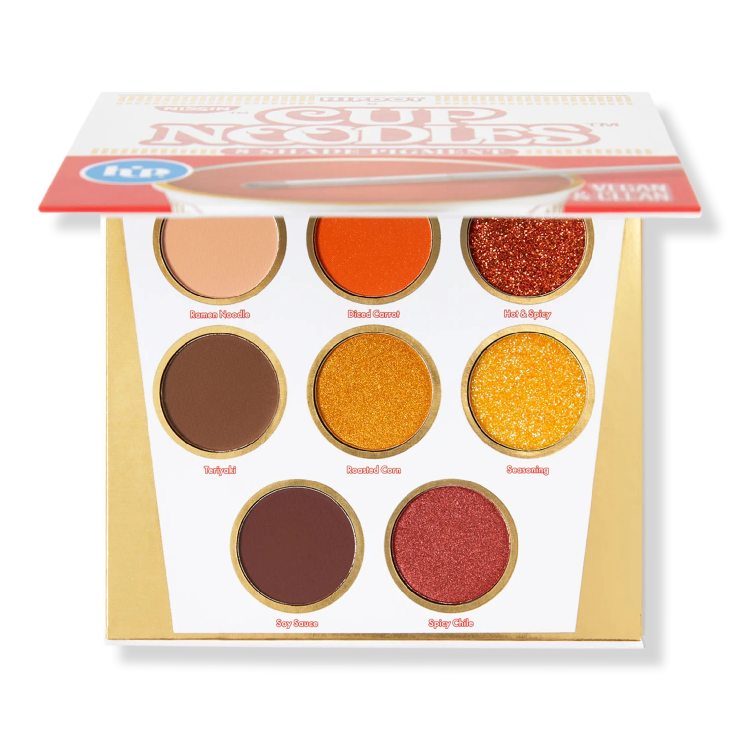 - Top Row: Ramen Noodle (matte nude), Diced Carrot (matte orange), Hot & Spicy (orange glitter with gold undertones)